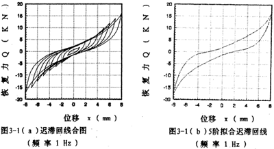 2,將擬合得到的各冪函數(shù)多項式奇、偶次項分開寫成(3-5)式形式并作對應的曲線圖,如圖3-2(見34頁)所示,這樣就將恢復力分解成了單值非線性函數(shù)曲線和雙值的非線性函數(shù)閉合曲線,由此得到了對應的