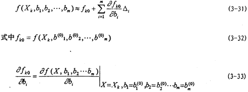 2是關(guān)于自變量X=[x1,x2,…,xp]T和待定參數(shù)B=[b1,b2,…,bm]T的形式已知函數(shù)(3-14)式,簡(jiǎn)寫成: