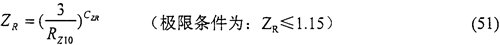 當所計算的齒輪要求持久壽命時,ZR可由式(51)計算得出,