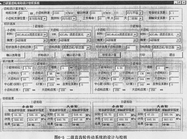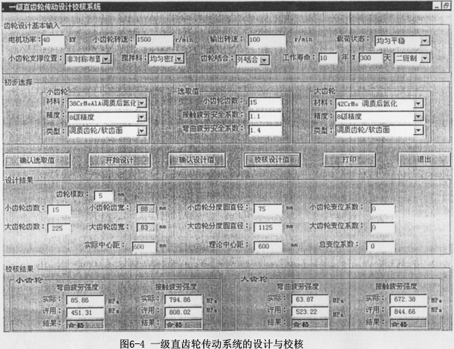 本系統(tǒng)根據(jù)企業(yè)的要求,將行業(yè)的普遍需求和企業(yè)的特殊需求結(jié)合起來,既具有通用性,又具有專用性。通用性表現(xiàn)為可以對任意類型的圓柱齒輪嚙合對(包括直齒輪、斜齒輪之、行星齒輪的內(nèi)嚙合和外嚙合等等)進行校核,專用性表現(xiàn)為針對一級、二級直齒輪和斜齒輪和斜齒化嚙合傳動系統(tǒng)的設計與校核。