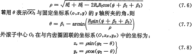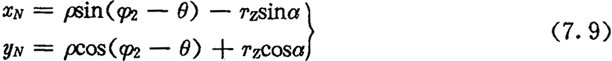 上式中,α為內(nèi)齒圈齒廓在M2點(diǎn)的法線與yN軸的夾角,它等于外滾子中心軌跡在O2點(diǎn)的切線正向與xN軸正向的夾角(圖7.3)