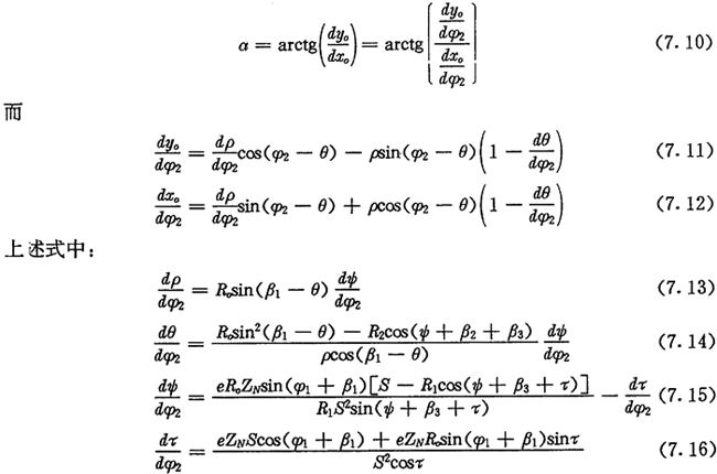 之內(nèi),只能使整個齒廓曲線的一部分由方程式(7.9)正確表示。為了使齒廓上所有的點(diǎn)都能用方程式(7.9)來正確計算,α的表示式應(yīng)為: