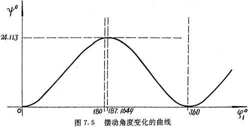 按上述公式得到齒廓曲線如圖7.1(b)所示。擺角ψ隨激波器轉(zhuǎn)角φ1變化的曲線如圖7.5所示。