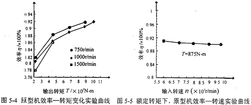 對三環(huán)減速機原型機和改進(jìn)型機進(jìn)行效率實驗,在相同的傳動條件下,改進(jìn)型機的效率略高于原型機,在額定轉(zhuǎn)速和額定轉(zhuǎn)矩下,傳動效率可達(dá)92%。