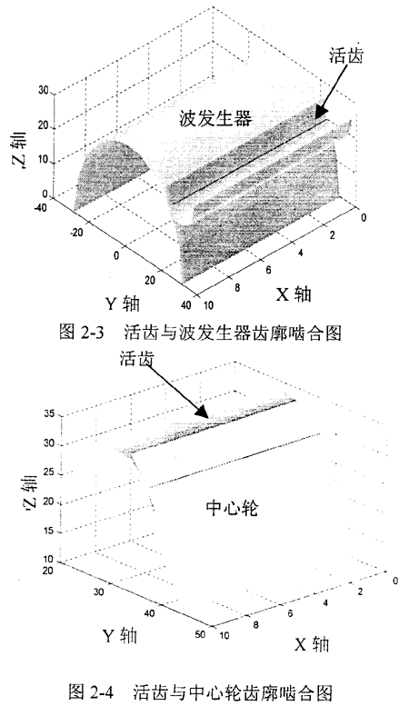 采用相同算法得到活齒與中心輪嚙合時齒廓曲面的三維圖形(圖2-4 ),同樣可見其接觸線也是一條平行于回轉(zhuǎn)軸的直線。