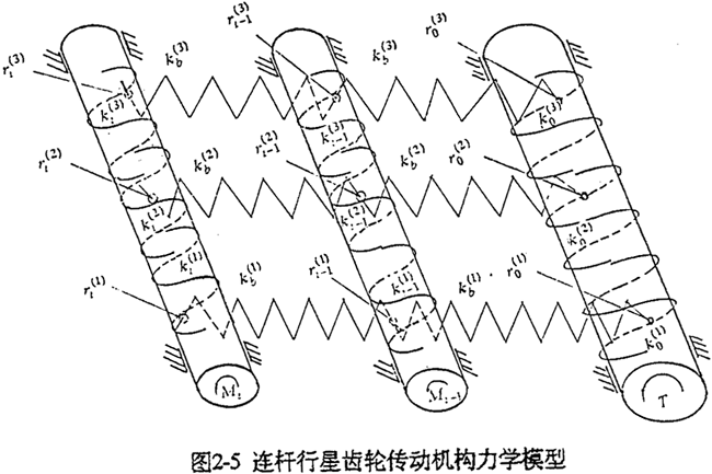 國科2-3所示為一多相并列連桿行星齒輪過約束機(jī)構(gòu)。為了得到與靜不定次數(shù)相對應(yīng)的S個(gè)補(bǔ)充方程,必考慮各構(gòu)件間、各相機(jī)構(gòu)間、以及多齒承載的位移協(xié)調(diào)要求,這是分析具有多余聯(lián)系體系受力的一般方法。為此,可先將機(jī)構(gòu)轉(zhuǎn)化為受力、變形等效的結(jié)構(gòu)(幾何不變體系),然后用結(jié)構(gòu)力學(xué)的方法分析系統(tǒng)、構(gòu)件位移協(xié)調(diào)的條件。