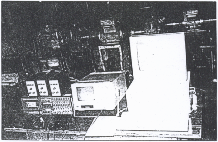 實驗時,通過控制臺操縱,交直流機組1發(fā)出直流電壓設直流測功機1按恒定轉(zhuǎn)速帶動整個傳動系統(tǒng)運轉(zhuǎn)。SHQ-2及汽車變速箱將被測試件SHQ-1輸出的轉(zhuǎn)速升高后驅(qū)動直流測功機2發(fā)出直流電流,該電流經(jīng)交直流機組2逆變?yōu)楣ゎl交流電返回電網(wǎng),完成整個電功率封閉傳動鏈。控制參通過控制交直流機組電壓、電流、改變傳動系統(tǒng)的轉(zhuǎn)速轉(zhuǎn)矩大小。被測信號由加速度傳感器提取,經(jīng)由電荷放大器放大后,進入磁帶記錄儀及CF-355頻譜分析儀進行分析計算。電功率流封齒輪傳動實驗臺如圖6-9所示。