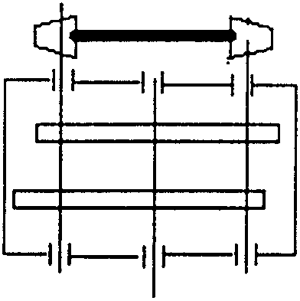 由公式(2-1)可知,在徑向尺寸受到一定的限制時,要獲得較大的傳動比,必須減少中心輪Za的齒數(shù)。但Za受到最小根切齒數(shù)的限制,不能太小。因此,為了獨得較大的傳動比,人們把行星輪加大,甚至完全去掉中心輪,于是演變出行星齒輪傳動的另一種形式:K-H-V行星齒輪傳動,其結(jié)構(gòu)圖見2-2所示。它的基本構(gòu)件中心輪b、轉(zhuǎn)臂H和構(gòu)件V,當(dāng)中心輪固定,轉(zhuǎn)臂為主動,構(gòu)件V從動時,傳動比為: