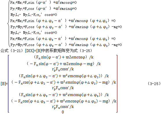 共可列出10個方程,聯(lián)立式(3-10)或(3-11),對于多相并列雙曲柄結構,用一般靜態(tài)力學分析方法,可列出3n+10個方程,而未知量的總數(shù)為4n+9(運動副反力和輸入力矩),故機構中未知量,(n-1)正是機構中的虛約束個數(shù),為了得到補充方程,必須考慮構件的變形協(xié)調要求。