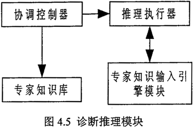 推理模塊是一個(gè)隱藏于后臺的推理計(jì)算模塊,它的結(jié)構(gòu)如圖4.5,協(xié)調(diào)控制器用來管理各推理機(jī)的工作并協(xié)調(diào)推理執(zhí)行器與專家知識輸入引擎模塊可知,對一示同的故障,其“數(shù)據(jù)層”、“故障現(xiàn)象層”、“故障原因?qū)印奔捌渌鼈冎g的連線關(guān)系絕不相同,協(xié)調(diào)控制器就是將“數(shù)據(jù)層”、“故障現(xiàn)象層”、“故障原因?qū)印奔捌渌鼈冎g的連線關(guān)系自動轉(zhuǎn)化為推理進(jìn)程關(guān)系,由推理執(zhí)行器完成推理診斷工作。