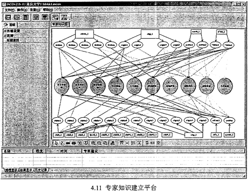 根據(jù)給出的數(shù)據(jù)端口及數(shù)據(jù)格式,即可按用戶的要求設(shè)計(jì)診斷結(jié)果輸出平臺。診斷結(jié)果應(yīng)給出診斷故障的名稱、故障發(fā)生的部位,故障發(fā)生的時(shí)間及程度。對于不同的故障,提示故障發(fā)生的可能原因,給出相應(yīng)的專家建議或維修方法等。圖4.10為本文集成系統(tǒng)的診斷結(jié)果輸出用戶界面。圖4.11為本文集成系統(tǒng)的專家知識庫建立及診斷推理平臺。