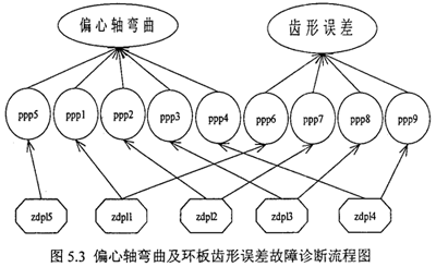 根據(jù)以上分析,本文用圖形化的智能故障診斷預報系統(tǒng)(INCON FIDPS), 建立了雙環(huán)減速器偏心軸彎曲及環(huán)板齒形誤差兩種故障的推理流程。如圖5.3 所示。
