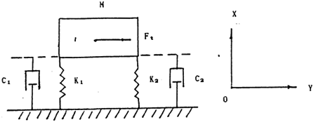 如圖7-3示,三環(huán)減速器由于受內部激勵源的激勵而在y向產生較大的振動,為了減小這種振動的危害,可采取隔振措施,以減小其對基礎的影響,如圖7-3示,在三環(huán)減速器與基座的接觸面之間增加吸振或阻尼元件,以減不止其振動對基礎的影響。