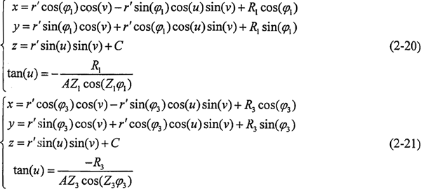 右齒面齒廓方程同左齒面方程,其中接觸角β取負(fù)值。