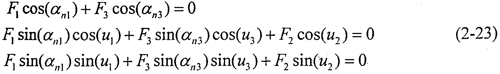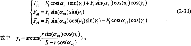 顯然F1、F2、F3組成一空間匯交力系,假設(shè)活齒在每個(gè)工作瞬時(shí)處于衡狀態(tài),根據(jù)圖2-10中各作用力的空間位置關(guān)系,可列方程如下: