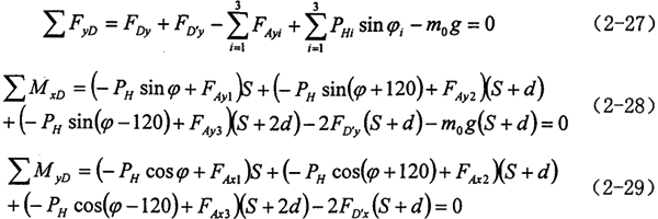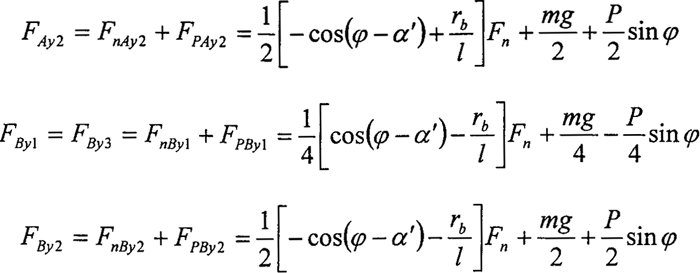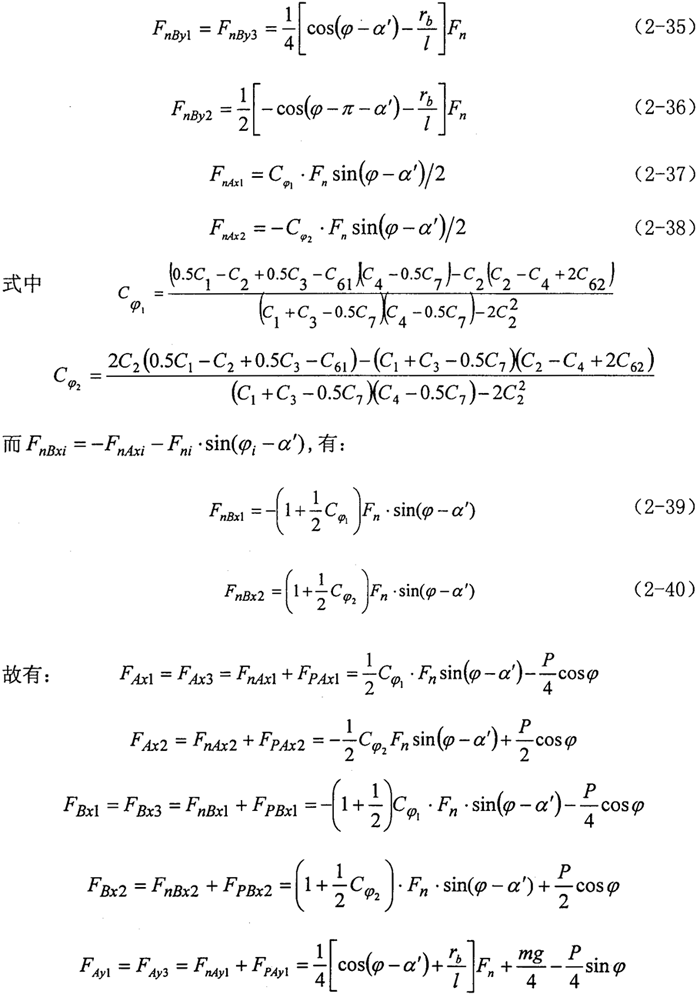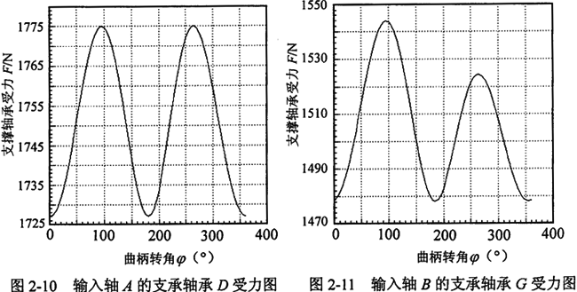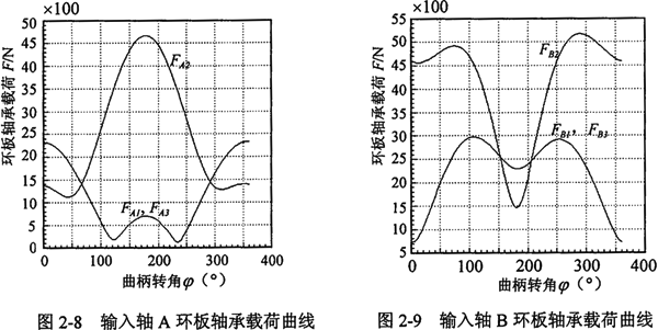 2.曲柄軸支撐軸承的作用力分析 根據(jù)力學(xué)原理,對于輸入同可得到下列方程式: