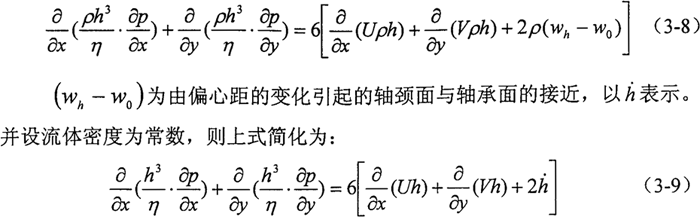 必須強調(diào)指出:上式的Reynolds方程是根據(jù)一系列假設(shè)推導出來的,適用于一般工況條件的潤滑計算。在特殊的工況條件下,當某些假設(shè)不能成立時,必須針對具體情況推導相應(yīng)的Reynolds方程形式。