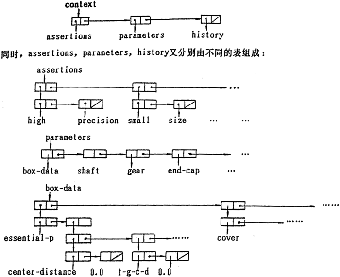 2.上下文的組成:圓柱齒輪減速器設(shè)計(jì)專(zhuān)家系統(tǒng)的上下文由三部分組成,它們分別是斷言表(ASSAERTIONS)、設(shè)計(jì)參數(shù)表(PARA METERAS)和進(jìn)程表(HlSTORY)。