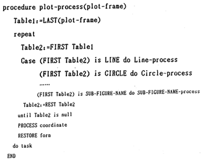 計算機各種語言以及各種繪圖軟件包各具風(fēng)格,繪圖指令各種各樣,但萬變不離其宗。因而就有可能形成一種通用的機制。作者在這里研制了一種較通用的繪圖指令生成器,其原理是通過分析各種繪圖軟件包的各種繪圖指令,在盡可能廣泛的情況下,使繪圖指令生成器的內(nèi)部,包含各種繪圖指令。同時,繪圖指令生成器也可以通過編輯或輸入的方法進(jìn)一步擴充繪圖指令?梢酝ㄟ^二種方式改變輸出繪圖文件的格式:一是通過編輯修改輸出語句格式;二是通過教導(dǎo)式的學(xué)習(xí)方法改變繪圖文件的物出格式,如下過程: