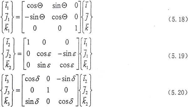 如果將(5.11)式變換到旋轉(zhuǎn)坐標(biāo)系oξηz中,則有
