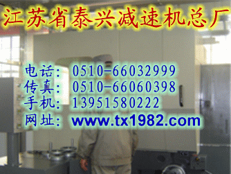 江蘇泰興減速機(jī)總廠業(yè)務(wù)部 在改革開放中崛起的江蘇省泰興減速機(jī)廠,現(xiàn)已成為中國減速機(jī)生產(chǎn)基地,中國機(jī)械工業(yè)500強(qiáng)重點(diǎn)企業(yè)。2004年公司完成含稅銷售收入6億元,創(chuàng)利稅1.5億元,交納泰興兩稅及基金規(guī)費(fèi)8500萬元。公司