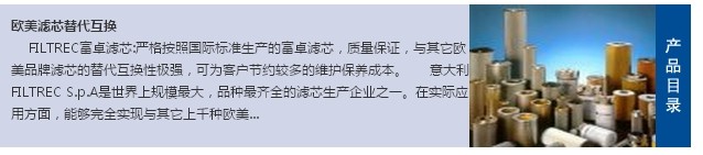 ![]() 富卓濾芯是對國外進口設(shè)備用濾芯國產(chǎn)化后的替代產(chǎn)品,可以分別替代PALL、HYDAC、賀德克、MANN等公司的產(chǎn)品。廣泛應(yīng)用于石油、化工、冶金、航空、電子、電力、制藥、環(huán)保、原子能、核工業(yè)、天然氣、耐火材料、消防設(shè)備等領(lǐng)域的凈化。替代進口濾芯性能指標:過濾精度:1 ~ 100μm工作壓力(MAX):21MPa工作介質(zhì):一般液壓、磷酸脂液壓油、乳化液、水-乙二醇工作溫度:-30℃~+110℃ |