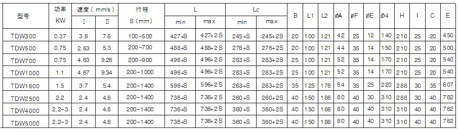 一、電動推桿概述: DT系列電動推桿是一種將電能轉(zhuǎn)換成往復(fù)運動機械能的通用機械手,適用于各種復(fù)雜或簡單的工藝流程,具有結(jié)構(gòu)緊湊,安裝方便,使用可靠,維修簡單,節(jié)約能源等優(yōu)點。與液壓氣動系統(tǒng)相比,不但省掉了繁雜的系統(tǒng)和減輕了重量,而且不受氣候及環(huán)境的限制,可實現(xiàn)遠(yuǎn)距離集中或自動控制,廣泛應(yīng)用于冶金、礦山、電力、煤炭、交通、糧食、化工、建材等部門。 二、電動推桿結(jié)構(gòu)與性能: 1、結(jié)構(gòu): 電動推桿由電動機、減速齒輪、絲桿、銅螺母、導(dǎo)向套、活塞桿、軸承座、軸承座、彈簧、缸筒座、聯(lián)接叉及光電接近開關(guān)裝置(用戶選購)等部件所組成。 2、工作原理: 電動機通過一級或二級齒輪減速后,帶動絲杠螺母付,把電動機的旋轉(zhuǎn)運動變?yōu)橹本運動,利 用電動機正反轉(zhuǎn)實現(xiàn)推桿往復(fù)動作。輸出推拉力相等。通過各種杠桿力臂長度,可以增長行程。 3、過載自動保護(hù)功能: 電動推桿內(nèi)過載自動保護(hù)裝置,當(dāng)推桿行程到極限位置或負(fù)載超過額定推力一定數(shù)值時,推桿 將自動切斷電源,起到保護(hù)作用,使電動機及其它構(gòu)件不致?lián)p壞,但不得以此作為正常運行時的限 位開關(guān)使用。因此要求在本機上另行配置外行程限位開關(guān)裝置,本廠可為用戶配置光電接近開關(guān)裝 置,以控制推桿正常起停。 ![]() |