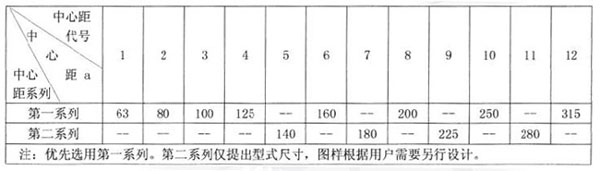 2.1 減速器型號(hào)用中心距表示,中心距及其代號(hào)見表1。