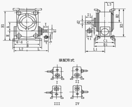 型號 尺寸 A B B1 C C1 H H1 H2 H3 L L1 L2 L3 n-d d1 (gc1) d2 (gc2) b b1 t t1 I I1 重量 kg WHT42 42 130 127 110 105 71 173 77 164 120 98 75 53 4-10 16 20 6 6 18.5 22.5 35 38 8 WHT65 65 180 150 155 126 63 215 105 212 144 124 96 63 4-10 20 25 6 8 22.5 28 40 45 16 WHT80 80 240 206 205 172 90 278 110 282 175 170 113 85 4-12 25 35 8 10 27.5 37.8 42 58 27~28 WHT100 100 292 238 250 196 105 331 135 335 210 205 133 93 4-15 30 45 8 14 32.5 48.2 58 82 42~44