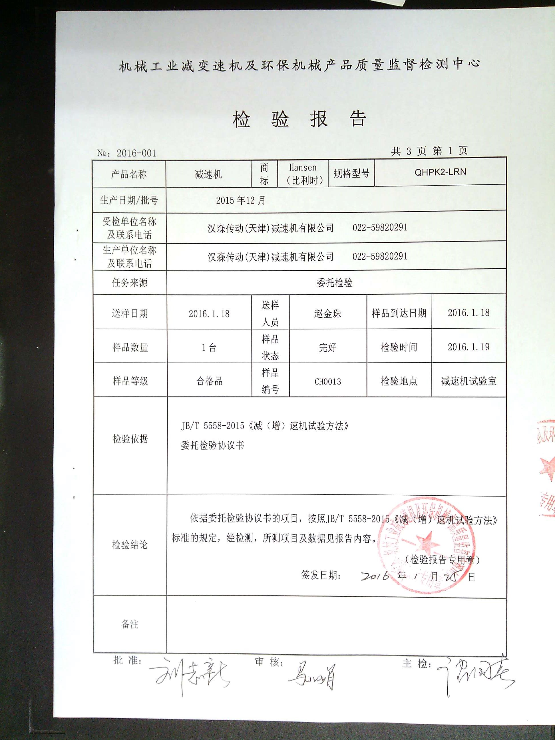 減速機檢驗報告
