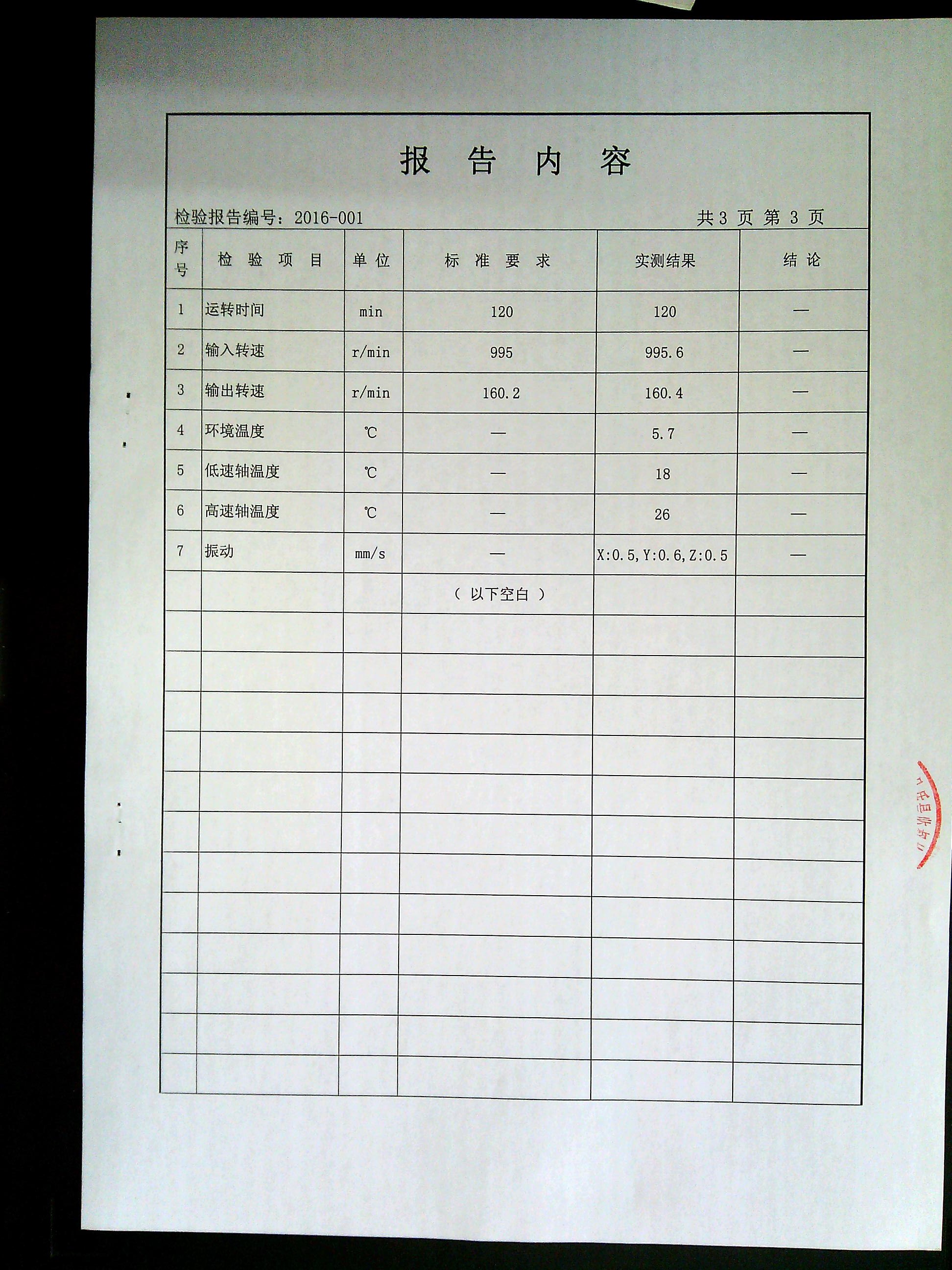 減速機檢驗報告檢測報告