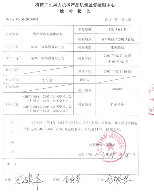 機(jī)械工業(yè)風(fēng)力機(jī)械產(chǎn)品質(zhì)量監(jiān)督檢測(cè)中心